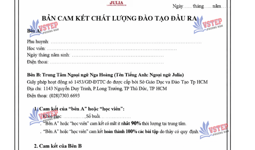 - Cam kết đạt B1 bằng văn bản hoặc điều khoản rõ ràng
