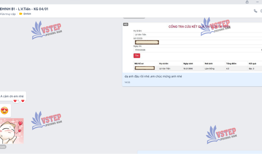 Kết quả học viên đạt B1 tại trung tâm Vstep Master