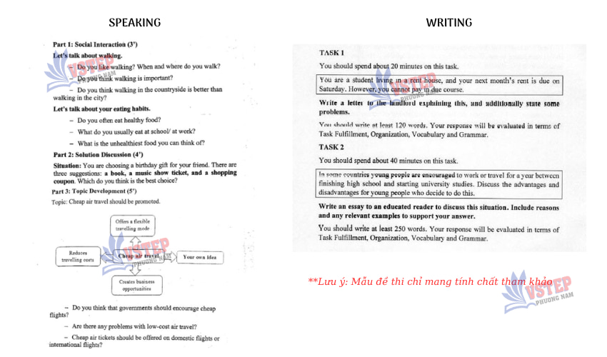 Mẫu đề thi VSTEP - kỹ năng Speaking và Writing