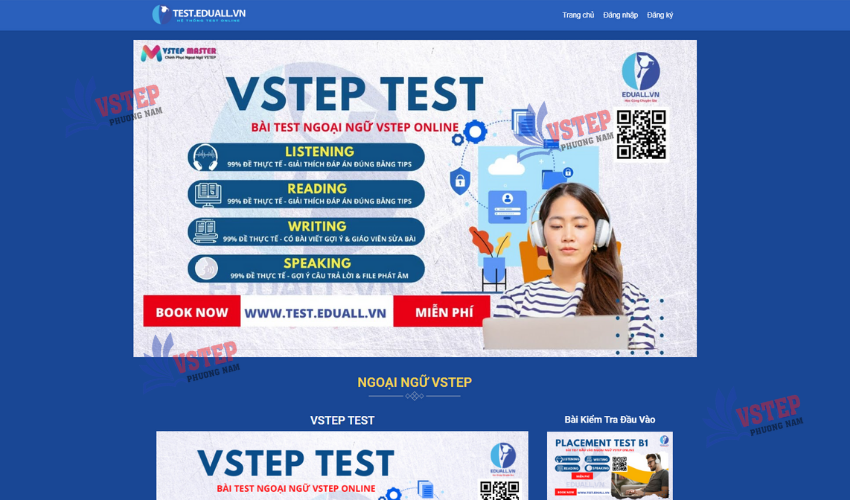 Giao diện các bài thi thử tại hệ thống Eduall - VSTEP Phương Nam