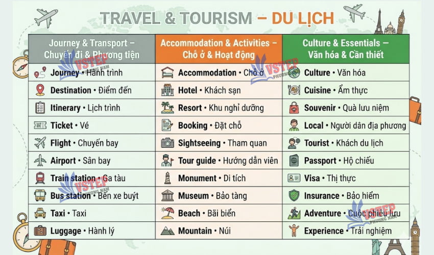 Từ vựng chủ đề Travel & Tourism