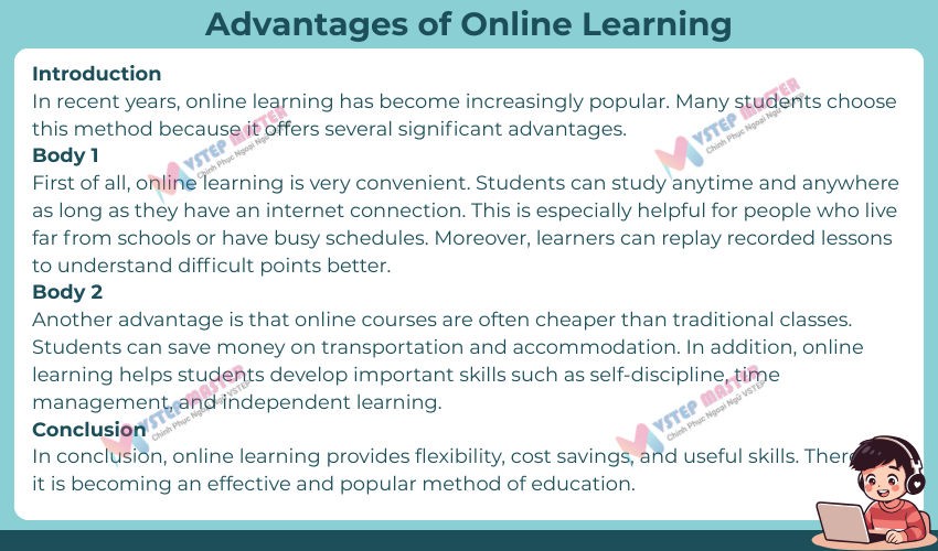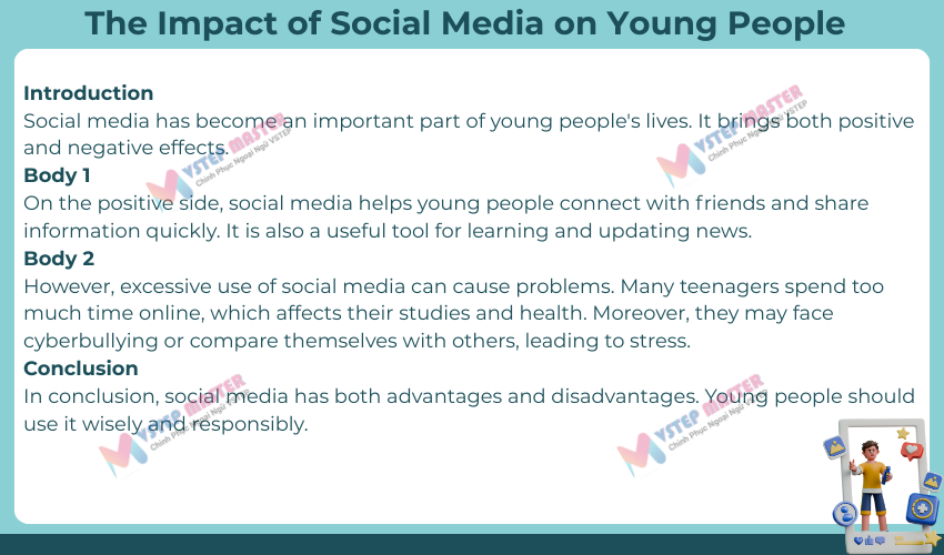- Có Introduction – Body 1 – Body 2 – Conclusion
