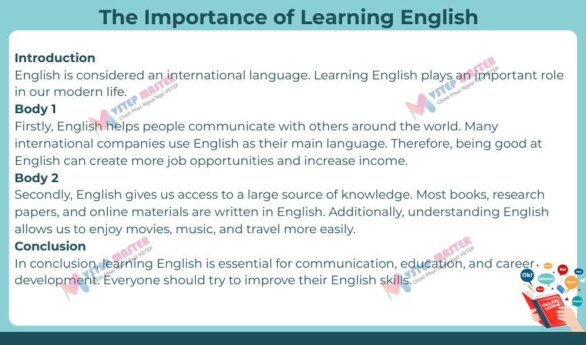 => Mục tiêu không phải học thuộc, mà là hiểu cách viết.Khi bạn hiểu cấu trúc và tư duy triển khai ý, bạn có thể viết được mọi đề — kể cả đề lạ.