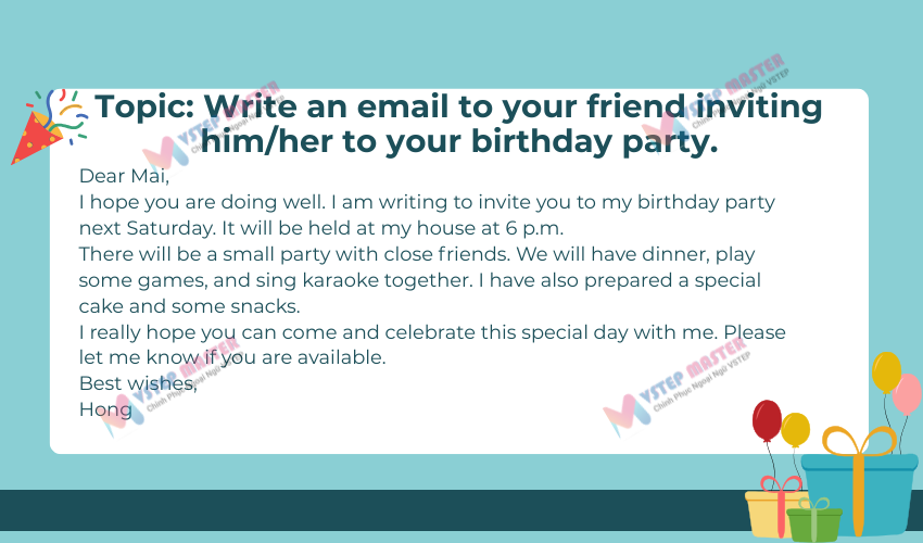 3. Bài mẫu mời bạn dự sinh nhật
