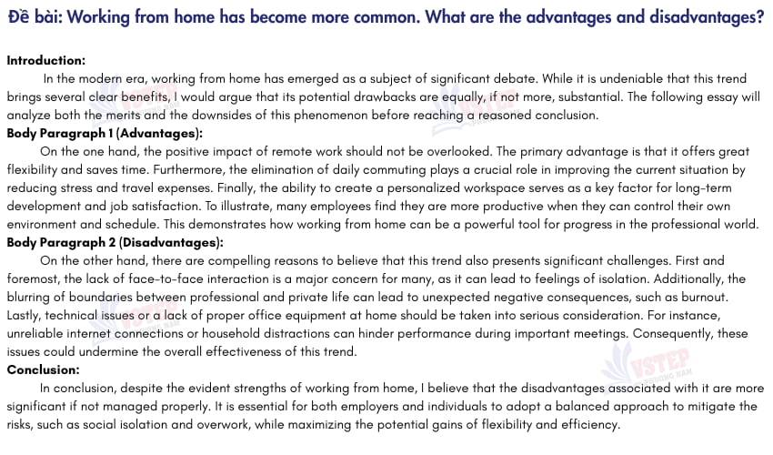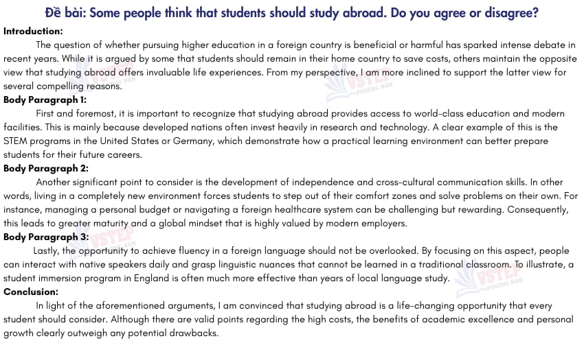Một bài VSTEP Writing Task 2 sample đạt điểm cao nên có cấu trúc thành 4 - 5 đoạn: