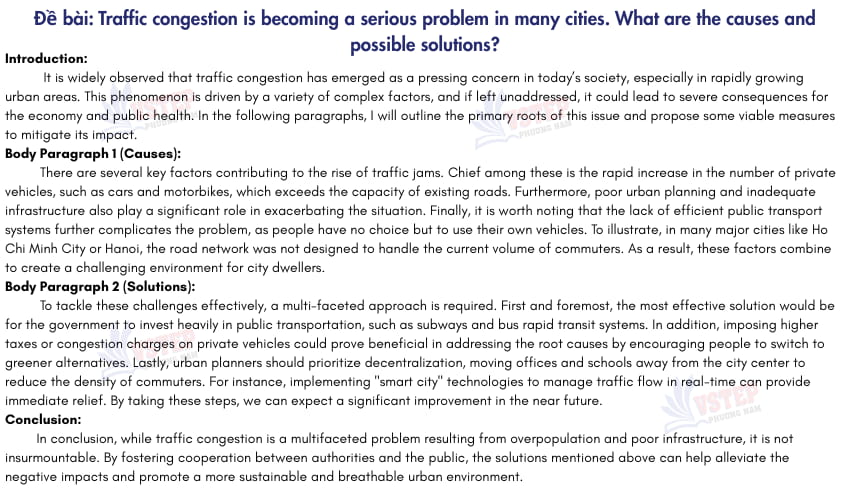 In conclusion, while (topic/ chủ đề) is a multifaceted problem resulting from (tóm tắt nguyên nhân), it is not insurmountable. By fostering cooperation between authorities and the public, the solutions mentioned above can help alleviate the negative impacts and promote a more sustainable outcome.