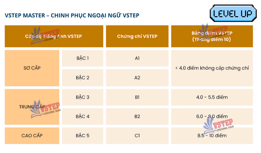 Các bậc phổ biến trong VSTEP gồm: