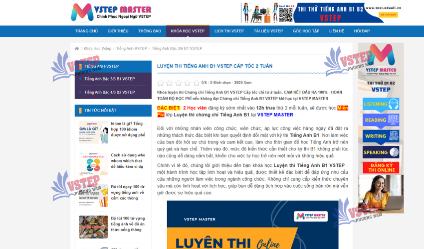 Khóa ôn luyện cấp tốc B1 của trung tâm Vstep Master
