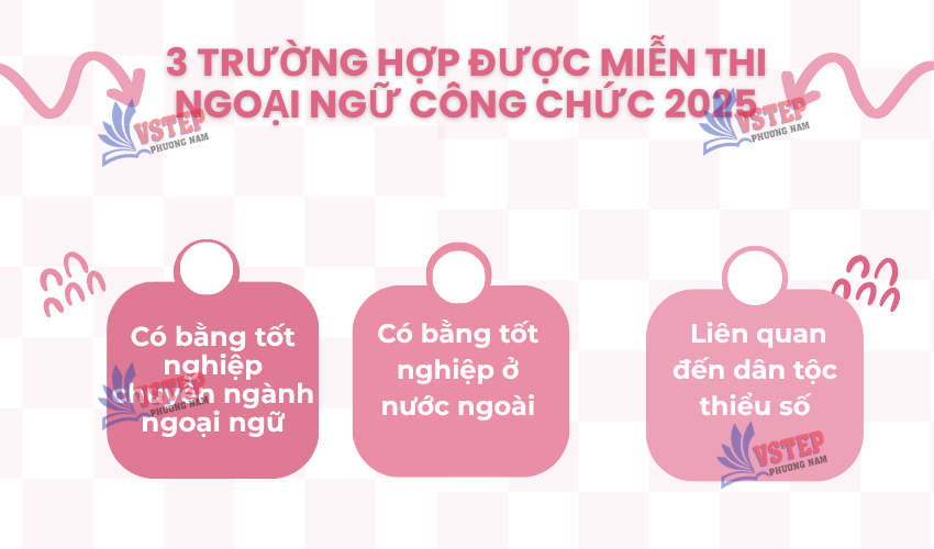 2. 3 trường hợp được miễn thi ngoại ngữ công chức 2025