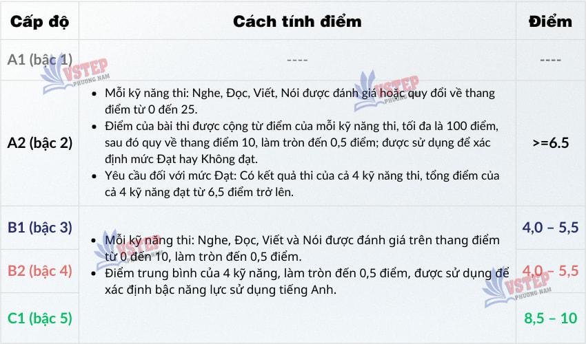 Bảng quy đổi điểm các cấp bậc của chứng chỉ VSTEP