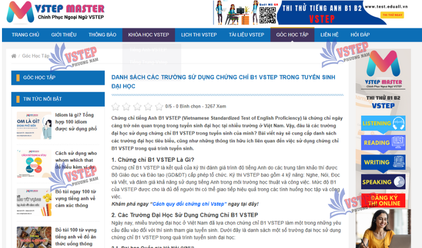 Danh Sách Các Trường ĐH Dùng Chứng Chỉ VSTEP B1 Để Tuyển Sinh (Xét Tuyển Thẳng)