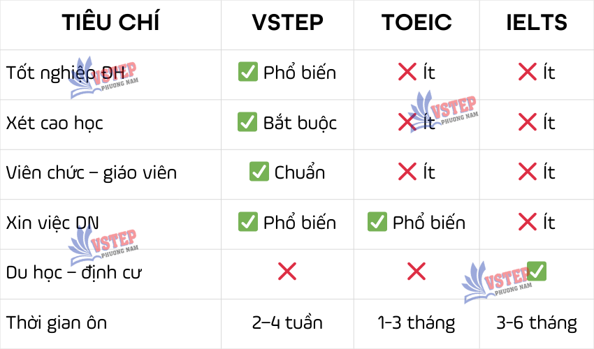 Tuy nhiên TOEIC/ IELTS không thay thế VSTEP trong đa số hồ sơ hành chính Việt Nam. Chi phí và thời gian ôn luyện cao hơn.
